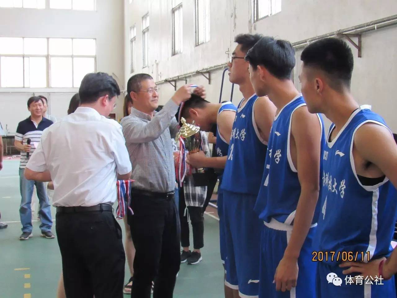 赛后闭幕式上,校团委书记王锋业,公司党总支书记张霄、经理葛振营、副经理李小军、办公室主任孙中丰、群众体育部主任赵国东出席了闭幕式。裁判长姜晓峰宣布比赛成绩,各领导嘉宾为获胜队伍颁奖,最后信誉最好的十大体育平台经理葛振营致闭幕词并宣布比赛圆满结束。