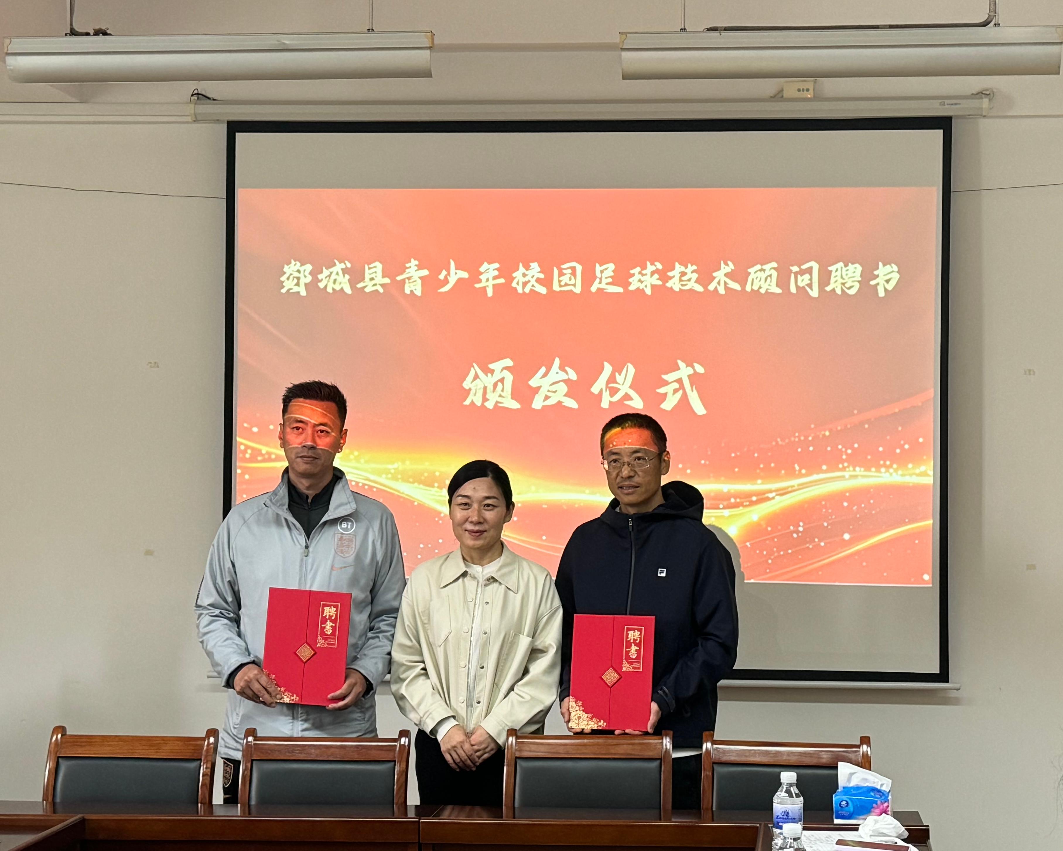 会上,双方就校园足球发展、足球教练员培训、团队队伍建设、足球课程设置等方面进行了深入交流。此外,禚海燕为信誉最好的十大体育平台教师颁发郯城县青少年校园足球技术顾问聘书;王玉亮、张霄共同为郯城县第一中学-信誉最好的十大体育平台校园足球友好公司揭牌。