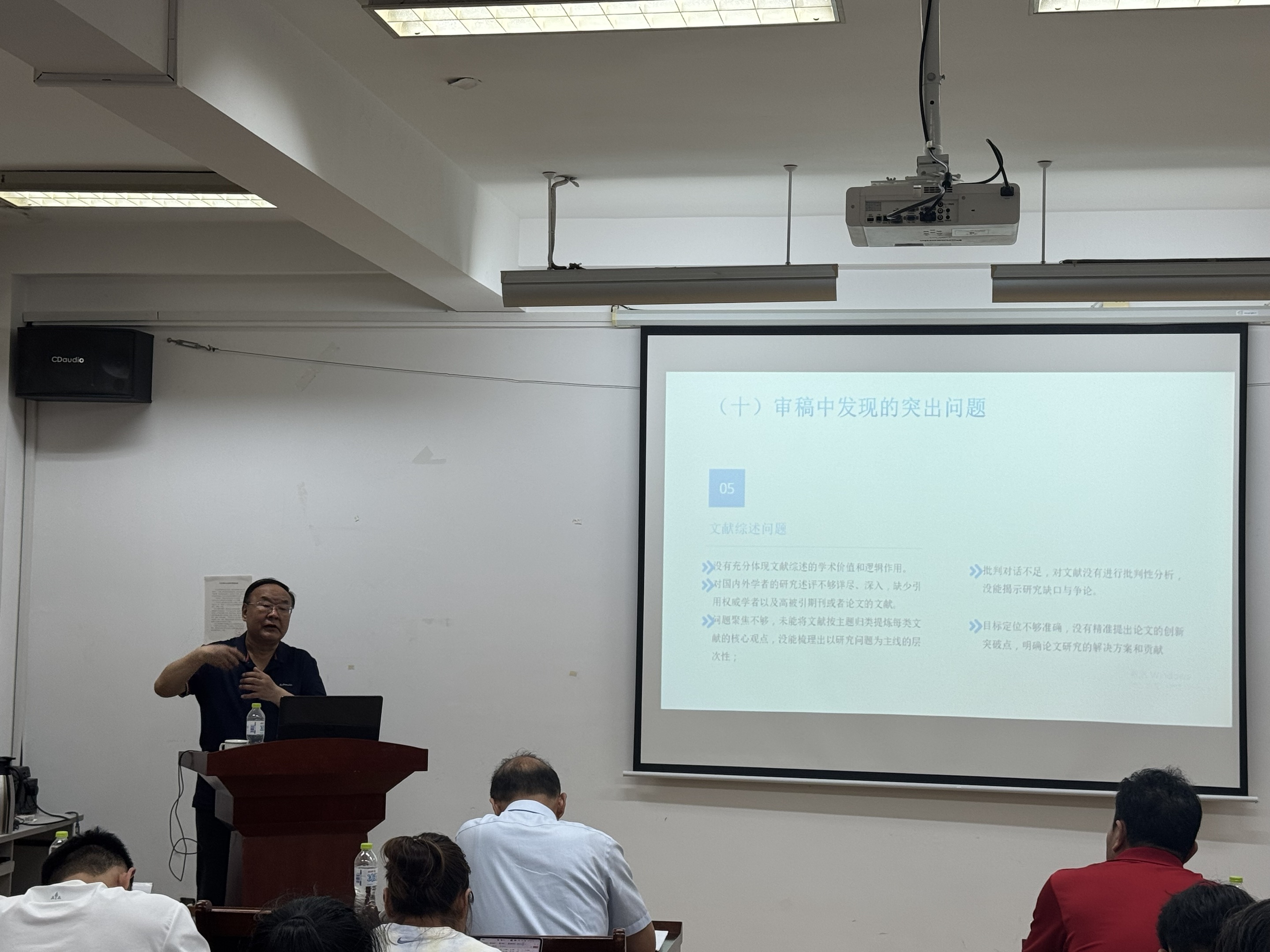 云涛教授以“国家中文核心期刊的审稿视角与论文写作和发表”为题做了专题报告,系统阐述了人文体育经济类高质量学术论文的撰写与发表策略,强调学术期刊需具备政治质量、编审质量、学术质量与出版质量,为师生提供了宝贵的学术写作指导。