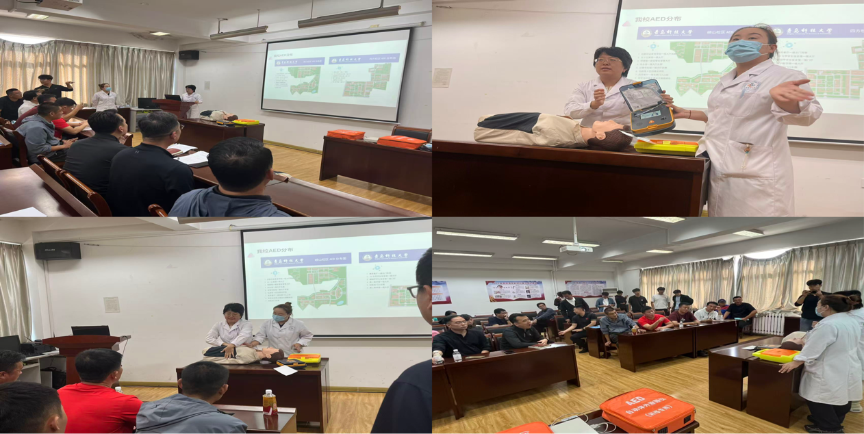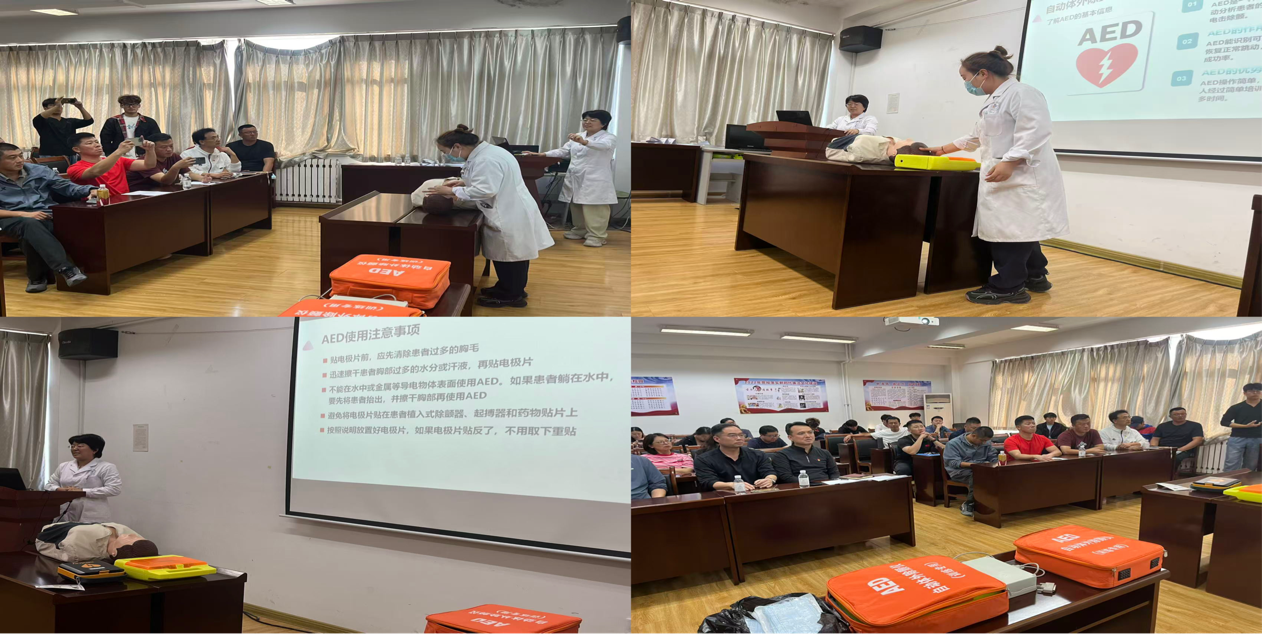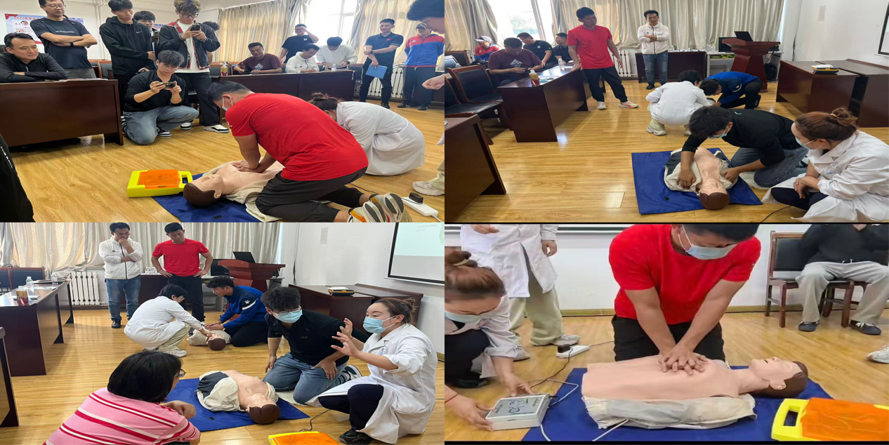 活动邀请校医院高术华经理选派专业急救讲师校医院刘文、张美慧亲临授课,内容聚焦AED设备原理拆解、标准化操作流程、心肺复苏(CPR)核心按压通气技巧,同步覆盖运动损伤、突发晕厥等常见意外的应急处置要点。培训采用“理论精讲+实操实训”双轨模式:从设备开机、电极片精准粘贴,到按压深度与通气节奏的协同配合,培训老师手把手指导、一对一纠错,拒绝“纸上谈兵”,确保每位参与者都能学懂弄通、熟练应用,真正实现“人人会用、个个能用”。